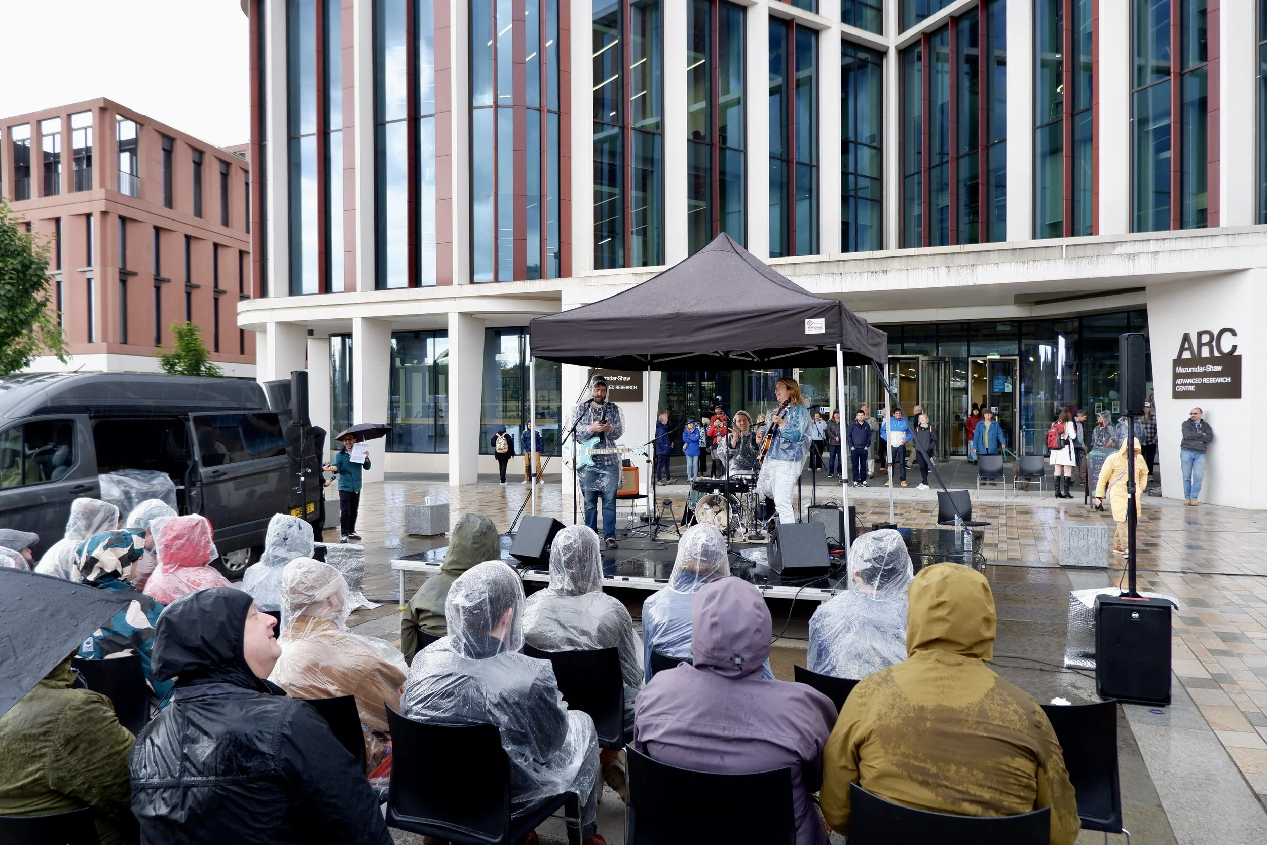 Taking place in both 2024 and 2025, the Dear Green Music Scene Festival, hosted in the ARC’s St Mungo Square, was a collaboration between various teams across the University of Glasgow. I curated, produced and project managed this sustainability powered, research-engaged music festival which took place over a hydrogen-powered and solar-powered stages. You can read how this project developed my learnings around collaborative working here.